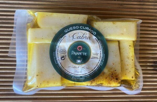 Elaborado con leche pasteurizada recién ordeñada de cabra, tras su curación se corta cuidadosamente y se introduce en aceite de oliva virgen extra aderezado con ajo, tomate seco, plátano, cebolla, pimienta negra, pimiento verde, pimiento rojo, pimiento, jengibre, mango, piel de naranja, guindilla, anís estrellado, nuez moscada, canela, menta, cúrcuma, piel de lima y azúcar moreno.